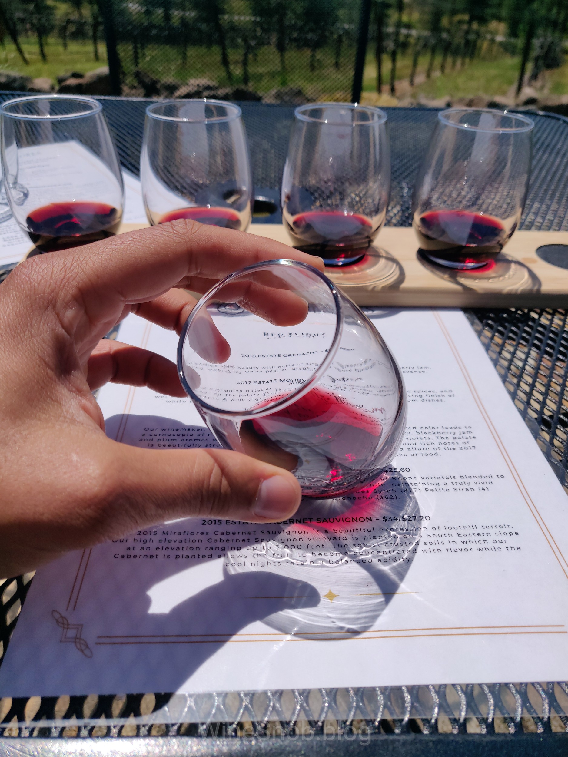 I had a great time visiting Miraflores a couple weeks ago. At the end of the road, off the beaten path, this beautiful estate felt more like a quiet retreat. A perfect match for their wines. The staff were casual, friendly, knowledgeable and very much involved in the production process. I had known about this winery for many years yet somehow this visit had escaped me. I started with a flight of Reds. My intention was to get a read on the estate, vines, terroir and overall expression as well as the winemaker’s own interpretation and vision of what each varietal should look like for this region.