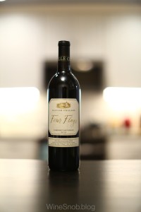 Up front, thin, slightly under-ripe dark plum. This is quickly followed by restrained currant, black licorice and a noticeable old, woody leather. Acidity is fairly unobtrusive and could be easily overlooked but for the precise amount of tension it lends to this understated body. Crisp, clean and fully integrated tannins roll off the palate in short order, transitioning to black currants and subtle bitter cola towards the back. Transition to finish is seamless leaving the palate slightly parched with a gentle spice tingle. The cola and currants develop a subtle sweet dimension as the palate resets. As it opens up, a firm tannic grip develops over the entire palate as some of tannins caramelize to add a slight sweet aftertaste. This wine is very much reminiscent of a classic old world style Bordeaux.